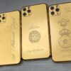 an 18k iphone of yellow gold. this product is a limited edition and it weighs approximately 150g. the smartphone has a capacity of 1tb and is embellished with 1800 to 2000 pieces of vs1 diamonds. the iphone 15 pro is decorated with 5.50ct on the side and 2.70ct on the back plate.